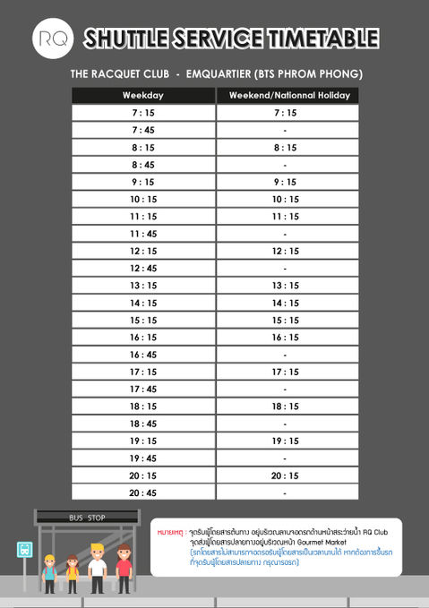 *Free shuttle bus service to/from BTS Phrom Pong Station (One trip every hour between 07.15 - 20.45). Timetable is shown below.